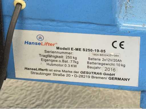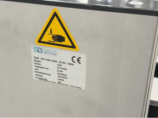 Marques : 1x HANSALIFTER Année de construction 2016 Capacité de charge 250 kg 0,3 kW Moteur de levage. 1x SYSKOM construit en 2022 hauteur 950 à 950 mm, capacité de charge max 2,0 kN. Pour plus de détails, voir les photos de la plaque signalétique.