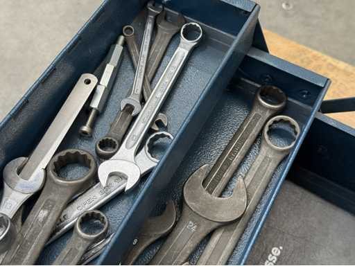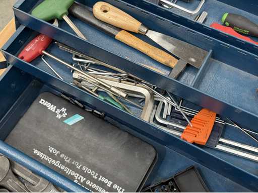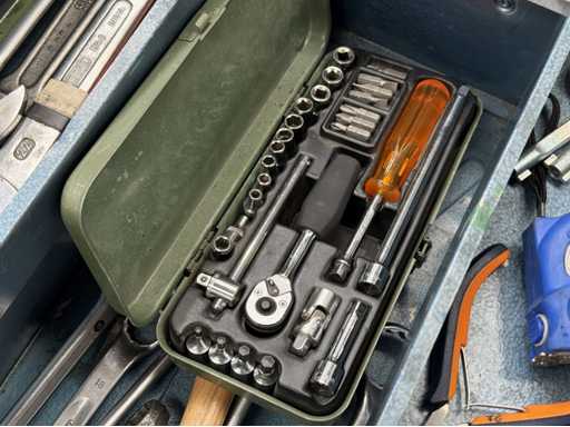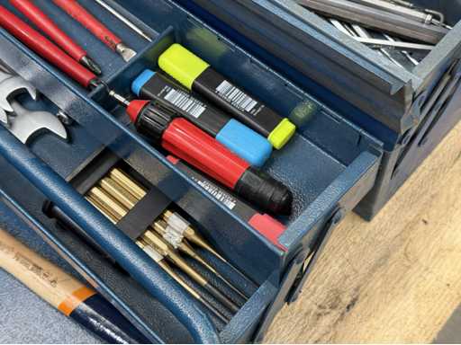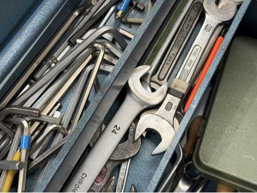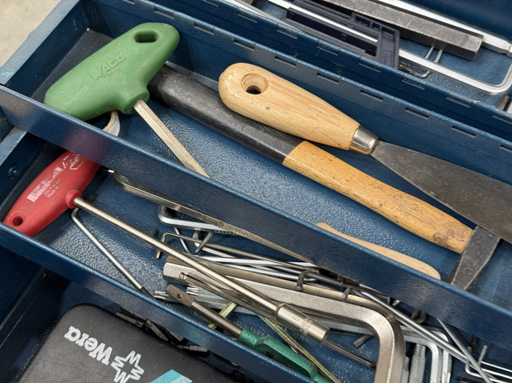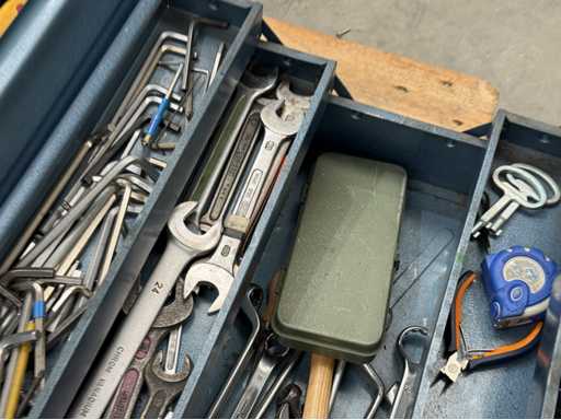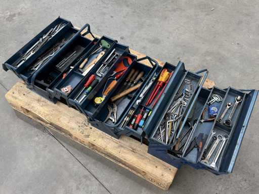Trois boîtes à outils équipées d’outils manuels ; voir les photos pour plus de détails