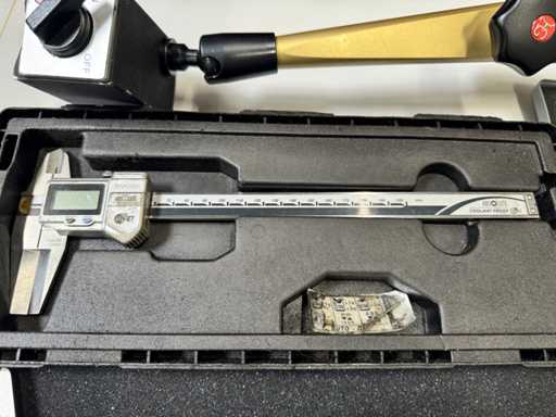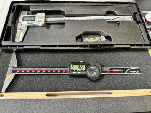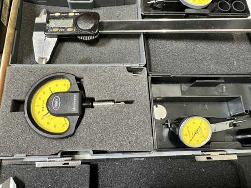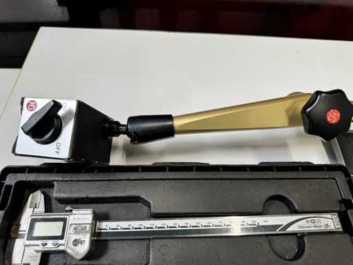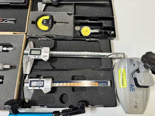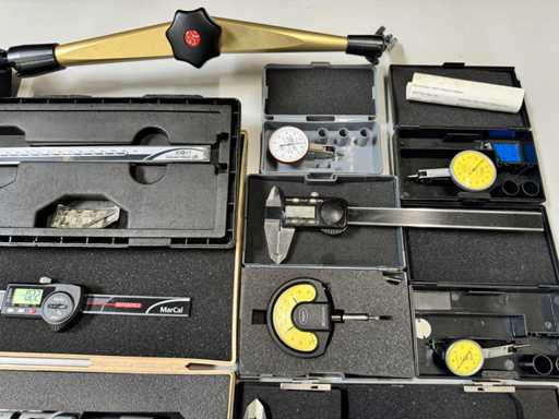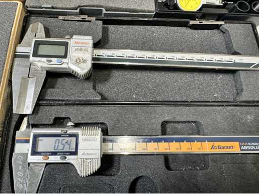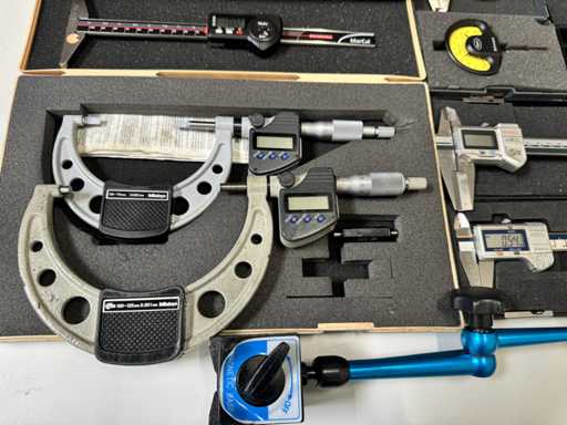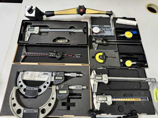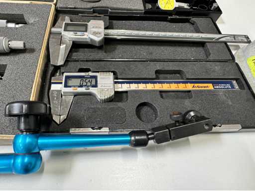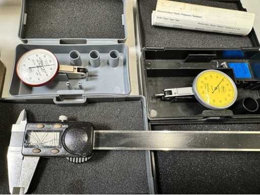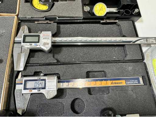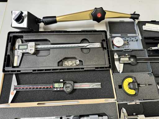 Assortiment d’étriers, principalement numériques, prises en U, supports de mesure et comparateurs, voir photos pour plus de détails