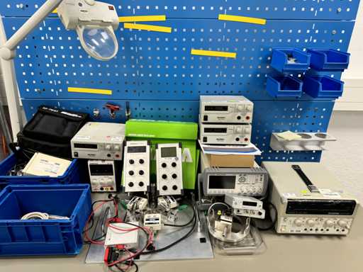 4 alimentations de laboratoire, différentes marques et conceptions, compteurs LCR ST2832 et divers appareils de mesure de turbocompresseur : PICO TURN-2G BD incl. divers matériaux de montage, voir photos pour plus de détails