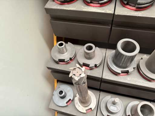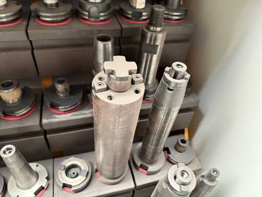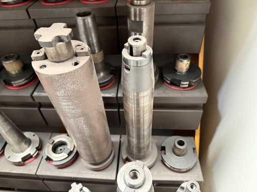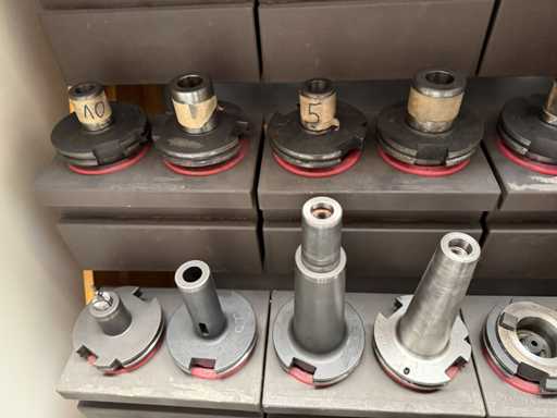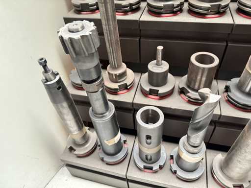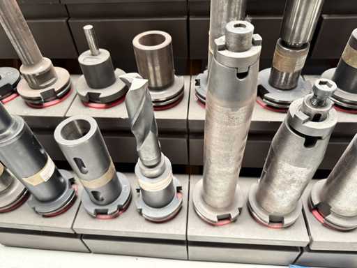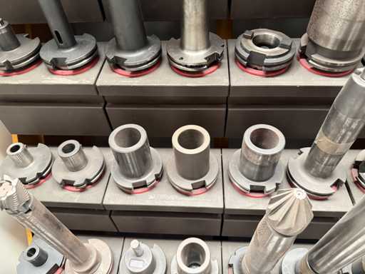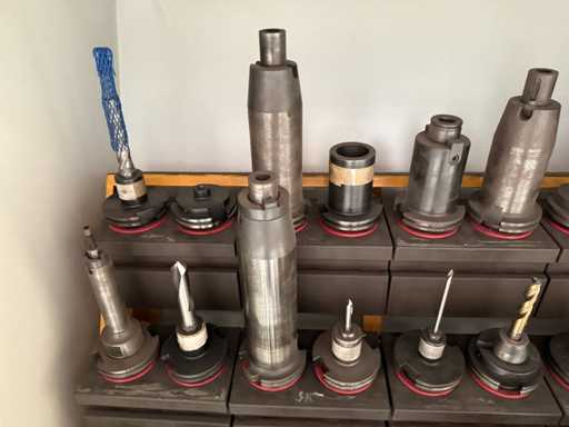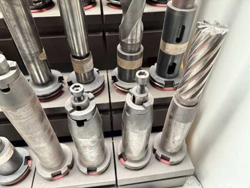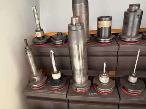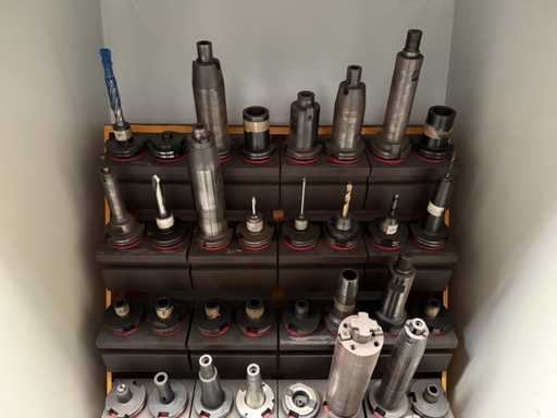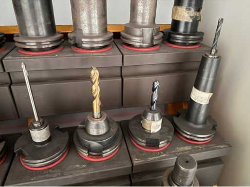 Armoire à outils WTS équipée d’un total de 56 porte-outils SK50 avec des outils de différents types ; pour plus de détails, voir les photos des plaques nominatives