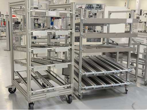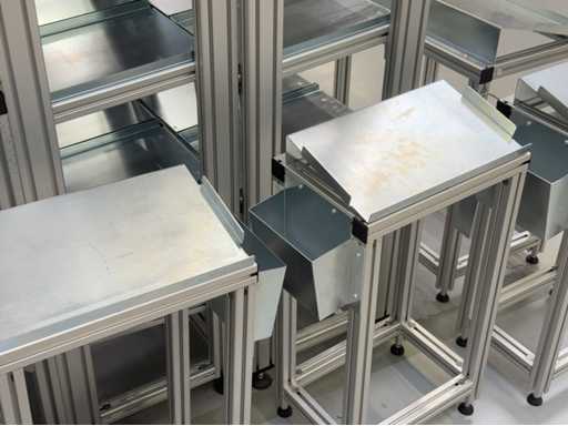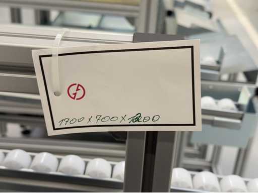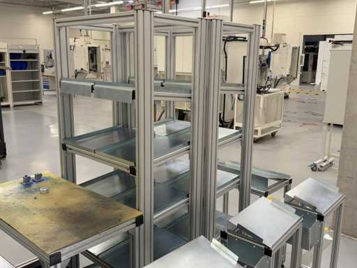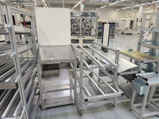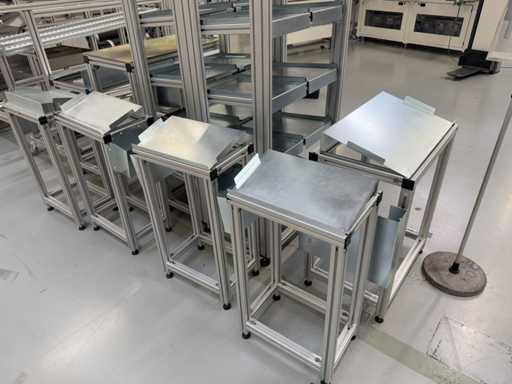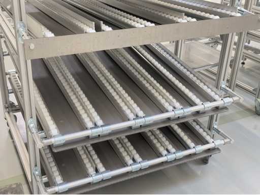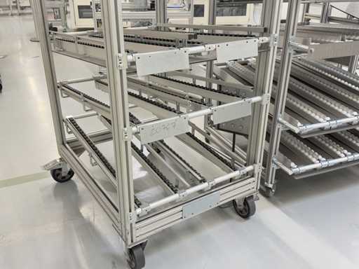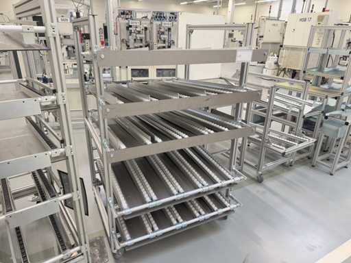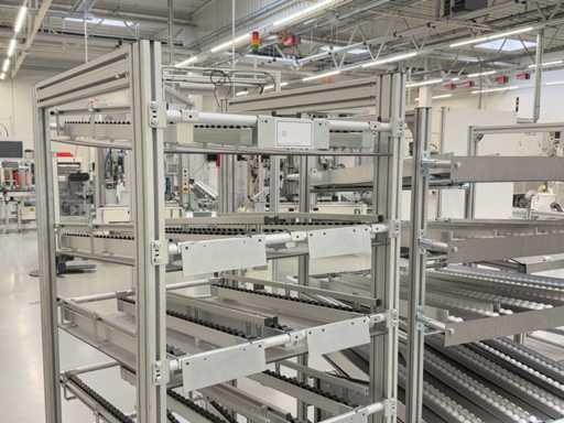 Différents types d’étagères et de racks dynamiques, un total de 13 pièces. Pour plus de détails, voir les photos des plaques signalétiques.