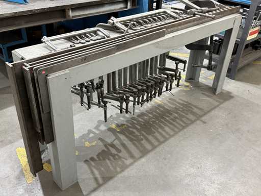 Étagère équipée d’un assortiment de serre-vis et de butées d’angle pour le soudage ; voir les photos pour plus de détails