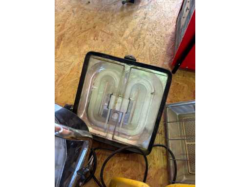 6 lampes halogènes et à économie d’énergie, ainsi qu’un chauffage au gaz
