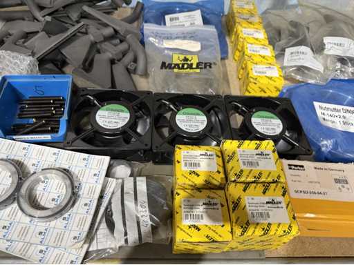 Étagère avec une large gamme de matériaux de montage : écrou rainuré, couteau supérieur, jeu de serrage, rallonges, encodeurs, accessoires, sacs à poussière, serre-joints, inserts filetés, verrous en coin, tuyaux d’arrosage, poignées en étoile, anneaux de sertissage, kits de joints avec rotor, courroies de distribution, etc. ; Pour plus de détails, voir les photos des plaques nominatives