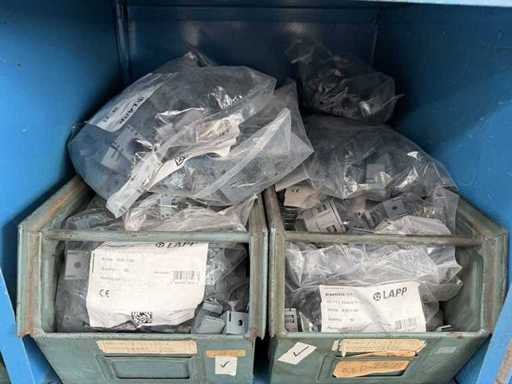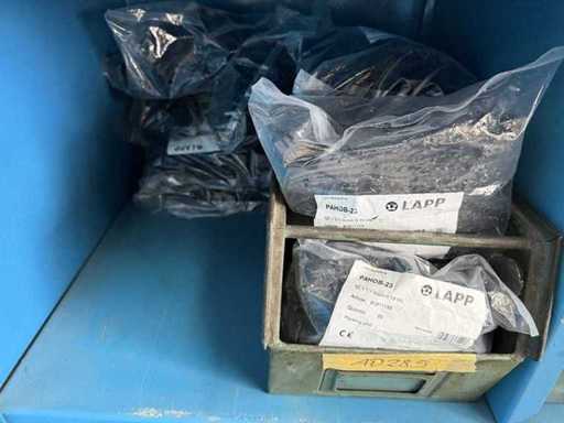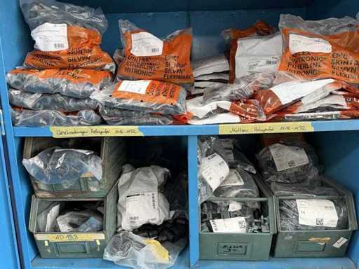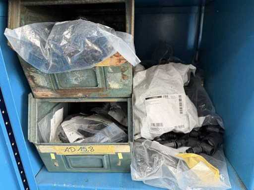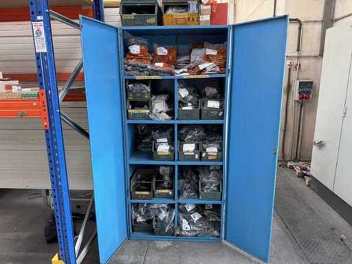 Armoire atelier avec son contenu ; Sommaire : grand assortiment de presse-étouts et de pinces à câbles, marque : Lepp ; Pour plus de détails sur les tailles, voir les photos des plaques nominatives