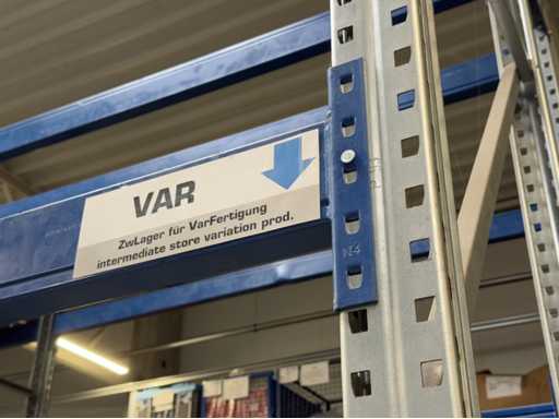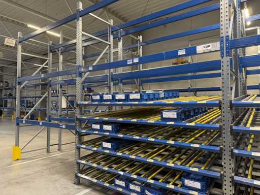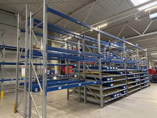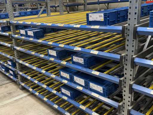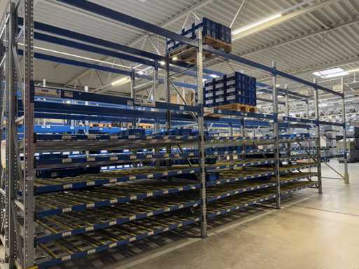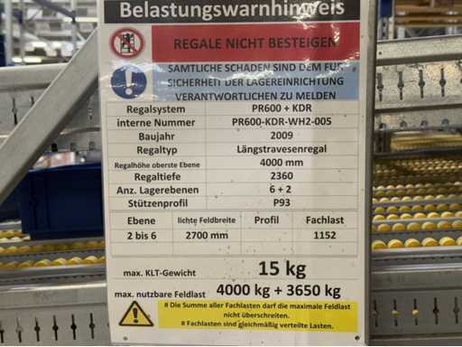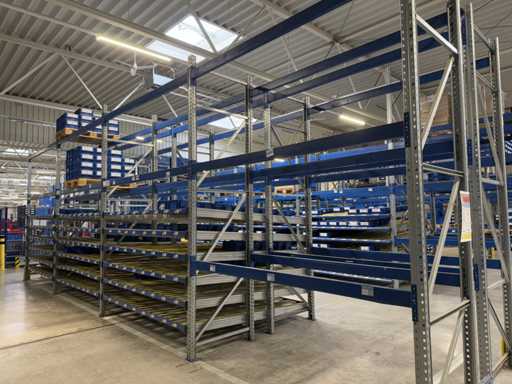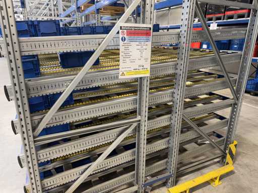 environ 11,2 mètres linéaires ; installé en tant que rack à flux ; Hauteur de l’étagère env. 4000 mm ; charge maximale de l’étagère 1152 kg, poids maximal KTL : 15 kg ; Pour plus de détails, voir la photo de la plaque signalétique ; complètement sans contenu ;