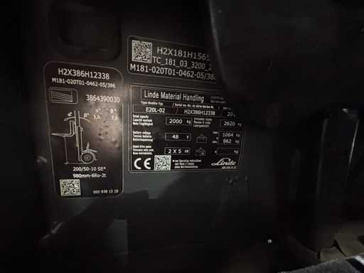 02/2018 Service + UVV 10/2026 Linde E20L Triplex 3e + 4e Réglage de fourche à soupapes Élévateur électrique 7 282 heures