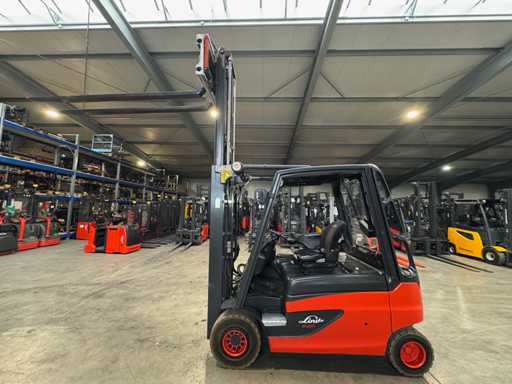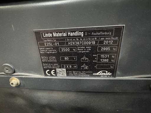 03/2019 Entretien + UVV 11/2026 Linde E25 2 500 kg Duplex Free Lift 3e + 4e Réglage de fourche à soupapes Élévateur électrique 7 041 heures