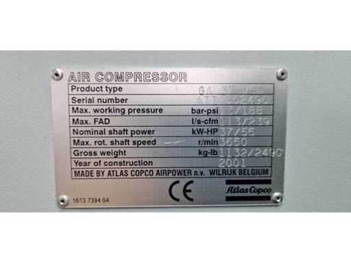 2001 ATLAS COPCO GA 37 VSD 2001 Compresseur d’air à vis