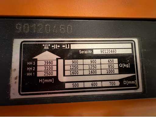 Camion empilement électrique pour piétons, capacité de 1600 kg, numéro de série 90120460, année 2004, chargeur inclus, ANR 1640