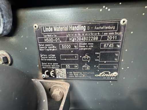 2011 Linde H50D 5 000 kg à cabine 3e soupapes Élévateur VW moteur