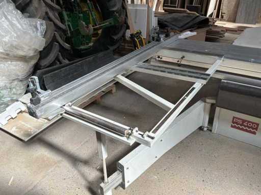 Scie à format RM Group PS 400 (2011) avec chariot coulissant, idéale pour la découpe précise de panneaux et bois massif. Machine robuste, équipée d’un affichage digital, en bon état de fonctionnement.