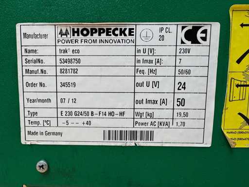 2012 Hoppecke 24V 50A Camion Palette Batterie de chargeur de fourmis