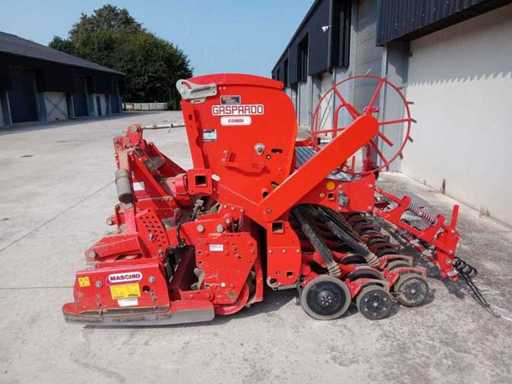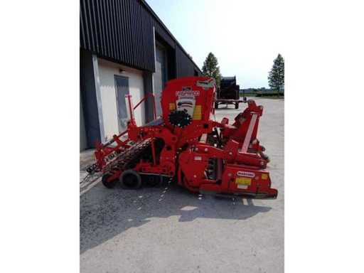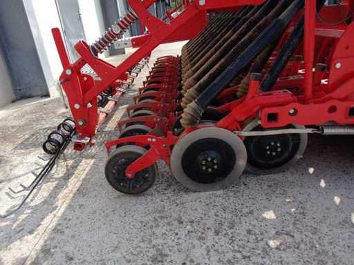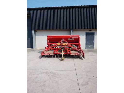 Équipé de : combinaison DM 3000 Combi seeding, 12 rotors équipés de 24 dents, 2 engrenages au moyen de pignons interchangeables 540/193-353-T 1000/357-T, accouplement Cat 2 incluant pendule à faible tension, entraînement 540/1000 tr/min, arbre PTO équipé d’embrayage à glissement à plaque, rouleau packer 500 mm, équipé de grattoirs durcis et réglage central, plaque de nivellement fixée au rouleau, combinaison de semis de construction 3 mètres de largeur de travail, 48 disques droits en Corex de 350 mm, (24 rangées), réservoir de semis de 600 litres, 29 sorties de boîte avec indication de niveau, boîte de vitesses sans marche entraînée par roue à marches, roues de semis avec commande fine et grossière, réglage mécanique de la profondeur de semidure, herse multirouleaux, supports de stationnement, compteur d’hectare, balisage de chemin, éclairage.