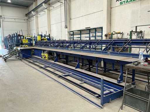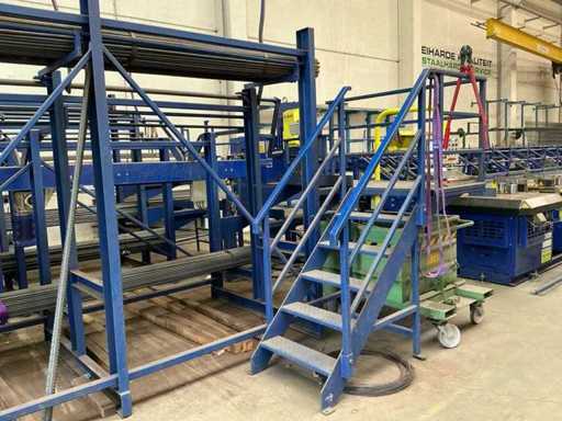 -Lié à la ligne de coupe. Équipé d’un convoyeur à rouleaux à commande hydraulique, d’un système de transfert automatique, d’un double pliage automatique et d’un système d’éjection dans des compartiments de pré-tri automatique.
