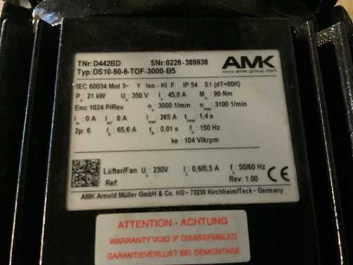 2022 AMK DS10-60-6-TOF-3000-B5 21KW Servomoteur - Inutilisé