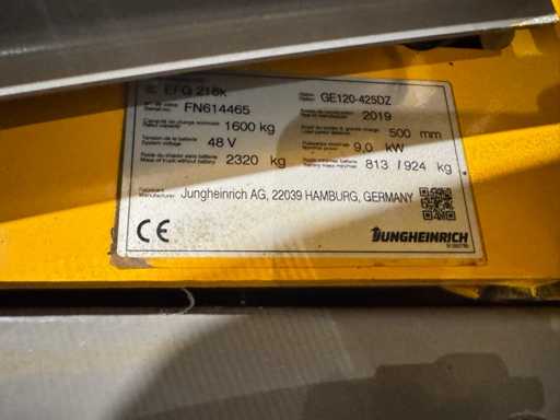 35/2020 Jungheinrich EFG216 1 600 kg Triplex 425 cm Élévateur électrique 6 884 heures