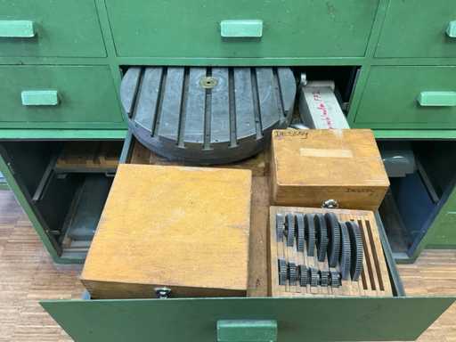 Contenu : Dispositif de fraisage en spirale, table de distribution, porte-outil horizontal, tête de division, pinces, pièces parallèles, convient pour le lot 1-11-21