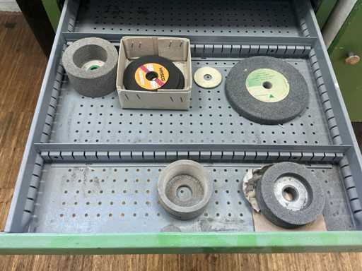 Y compris la meuleuse d’établi attachée, l’armoire à 6 tiroirs, le contenu des accessoires de la meuleuse d’établi