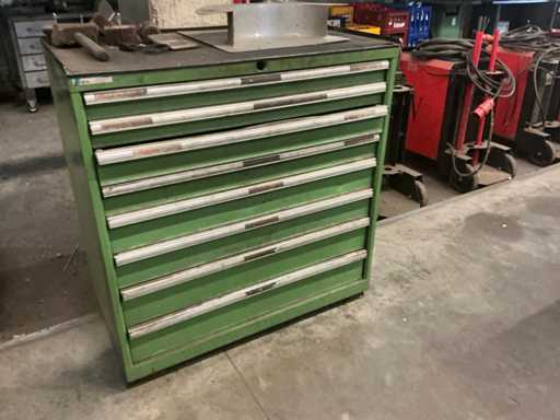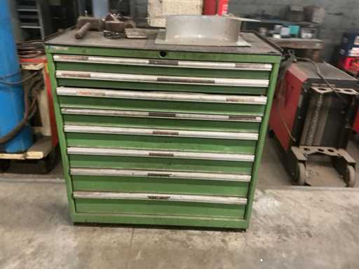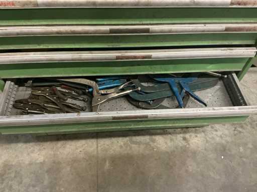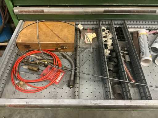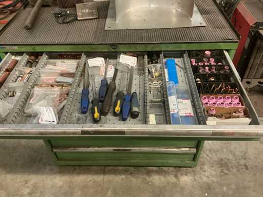 Hauteur devant le tiroir : 2 tiroirs avec 70 cm de hauteur avant ; 2 tiroirs avec une hauteur avant de 90 cm ; 2 tiroirs avec une hauteur avant de 120 cm ; 2 tiroirs avec une hauteur avant de 150 cm/ incluant le contenu / contenu composé de : accessoires de soudure et outils manuels
