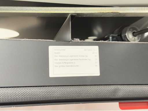 Charge maximale par niveau de stockage coulissant : 60 kg, charge maximale par étagère Niveau de stockage : 75 kg, volume du bac d’égouttage : 33 litres. Pour plus de détails, voir la photo de la plaque signalétique, complètement sans contenu.