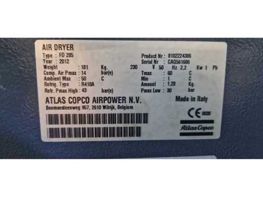 2012 ATLAS COPCO FD 285 2012 Sèche-Eau à réfrigération Flux d’air