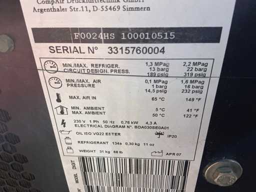 170xH130cm, équipé d’un séchoir d’air Compair F0024HS
