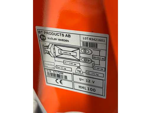 BT HHL 100 Camion Palette Électrique à Élévation Haute