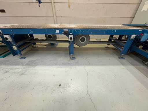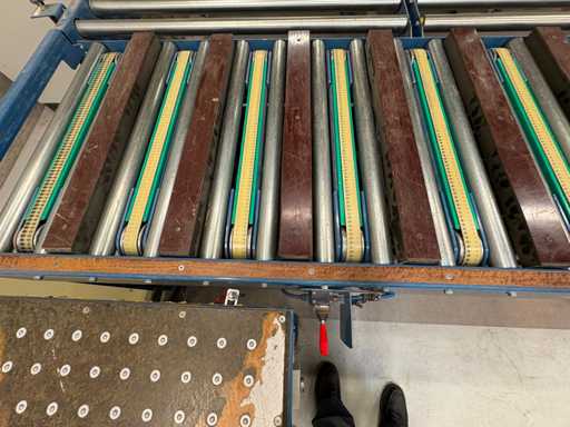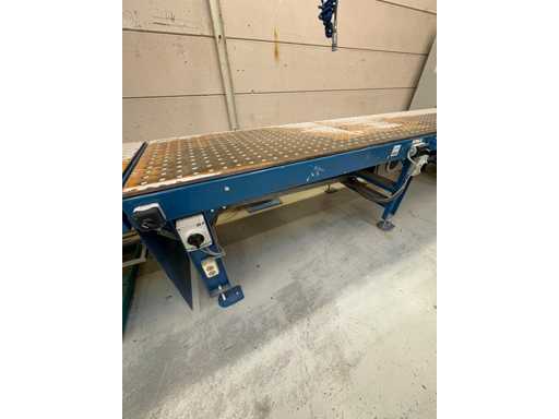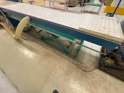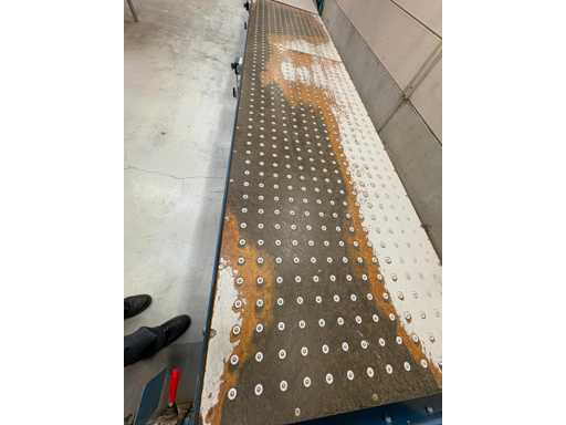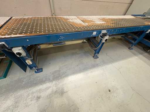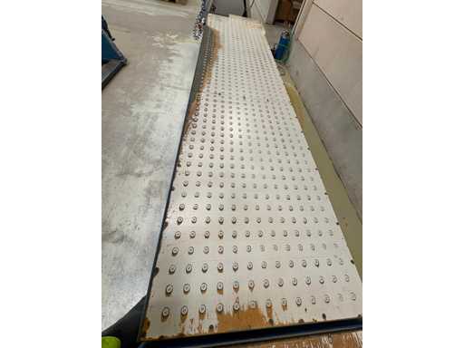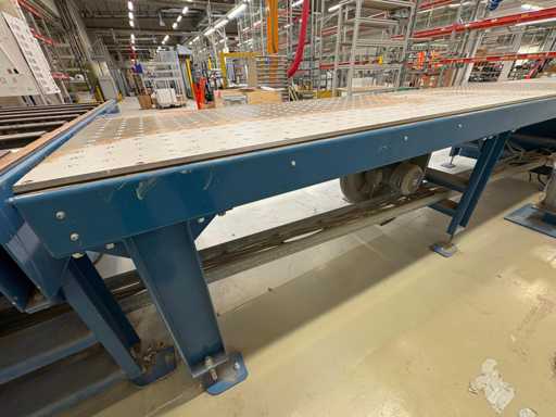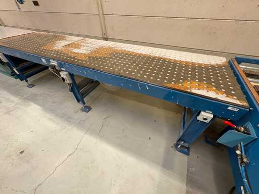 Système d’assemblage - Incluant ; Table d’aspiration d’air, taille de table de 3 200 mm x 790 mm, capacité de 1 000 kg (anciennement EU555046), table d’assemblage à billes à roulis, table d’aspiration d’air de 3 200 mm x 790 mm (anciennement EU555047), table d’assemblage étroite à courroie et rouleau motorisé, taille de table de 2 400 mm x 750 mm, 8 élévateurs pneumatiques (anciennement EU555048)