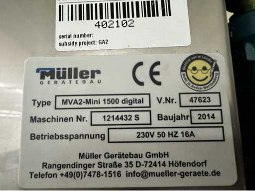 Type : MVA2-1500 Numérique , Numéro de machine : 124432S , équipé de 2 pompes Marque : LOWARA , pour plus de détails voir photos de la plaque signalétique