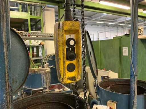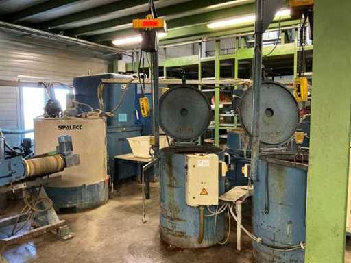 Tambour de diamètre 600 mm, charge maximale 130 kg, épaisseur de paroi 3 mm, matériau ST37, charge 12 h, chauffage 12 kW, palan inclus et 2e tambour