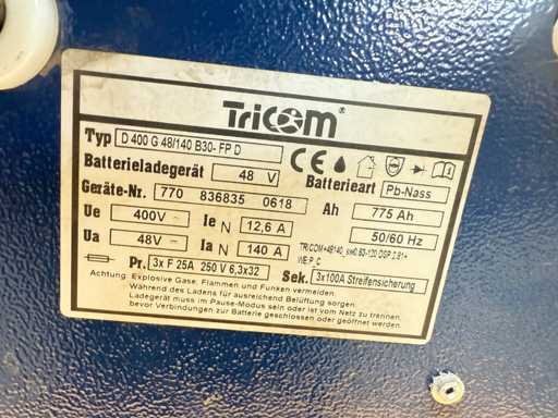 Chargeur de chargeur Tricom Futur 48V 140A 775Ah 2018