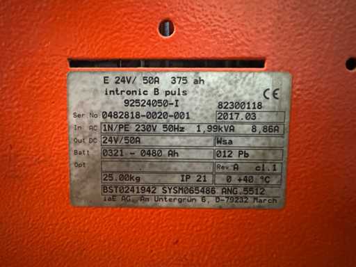 Chargeur de fourmis Linde 24V 50A 375Ah Chargeur de fourmis Linde 24V 50A 375Ah