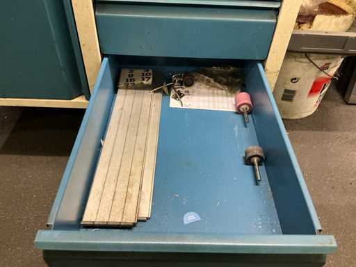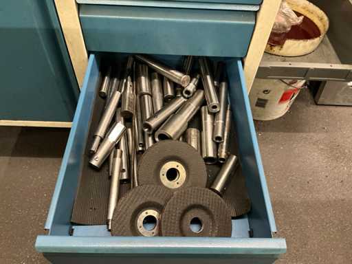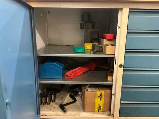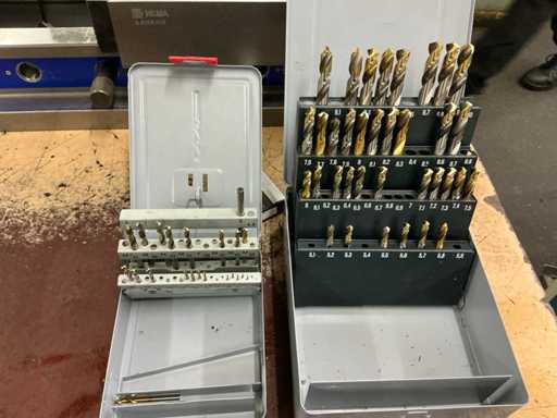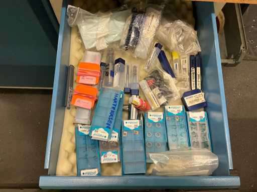 - Tiroir avec une large gamme de fraises/perceuses dans des boîtes en plastique (y compris Ingersoll, Dormer, ATORN, et bien d’autres)