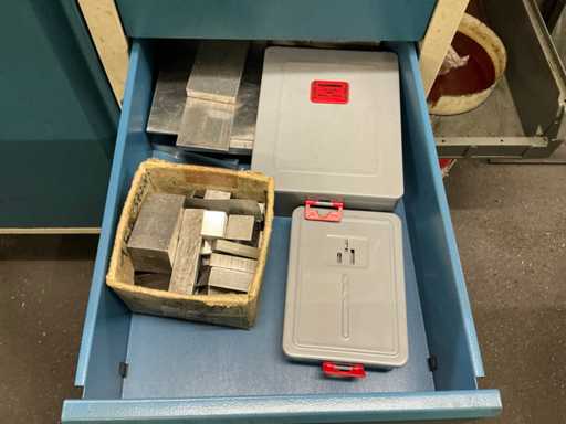 en mousse - Divers blocs métalliques et matières premières dans un tiroir