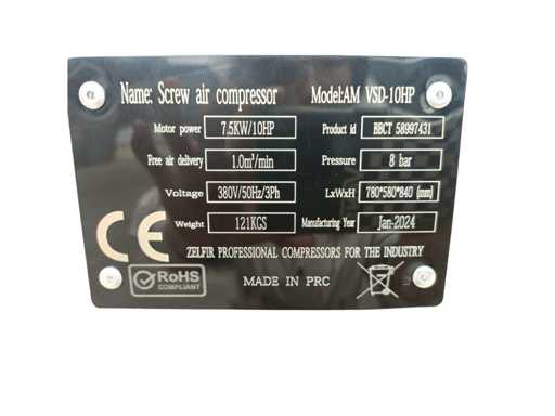Compresseur super silencieux, vis, alimentation 380 volts, pression de 8 bars, puissance de 10 Hp, jamais utilisé dans son emballage d’origine