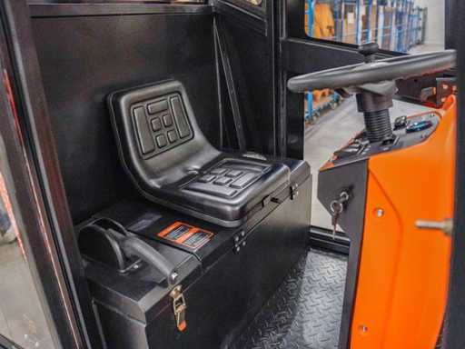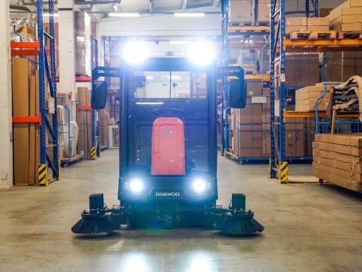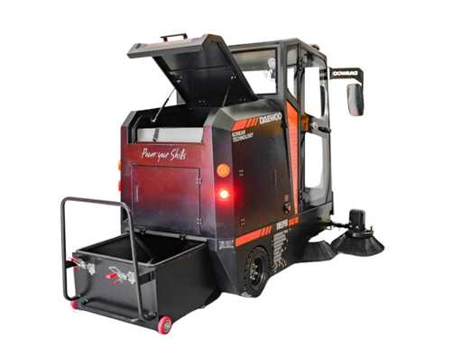 Angeboten wird die akkubetriebene Kehrmaschine mit Kabine DAS100 der Marke Daewoo. Mit ihrer beeindruckenden Flächenleistung von 12.000 m²/h sorgt sie für eine schnelle und effiziente Reinigung von verschiedensten Hartbodenflächen wie bspw. Parkplätzen, gepflasterten Firmengrundstücken oder landwirtschaftlich genutzten Anlagen.