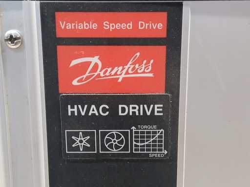 Entraînement à vitesse variable pour le système HVAC industriel pour le contrôle du moteur, tension d’alimentation 380–415 V. Condition d’utilisation avec signes de fonctionnement normaux. Fabriqué au Danemark.