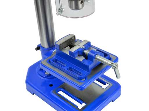 Perceuse à table à colonnes équipée d’un moteur électrique de 250 W. Entraîné par une courroie en V, avec réglage de vitesse à 5 vitesses. Table de travail ajustable en hauteur et inclinaison, maximum 45° à droite et à gauche. La foreuse supporte des coupeuses d’un diamètre maximum de 16 mm.