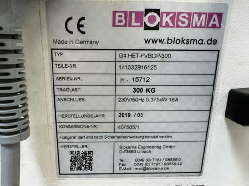 Type : G4HET-FVBOP-300 , Capacité de charge : 300Kg , pour plus de détails voir les photos de la plaque signalétique
