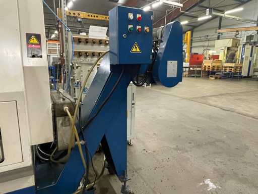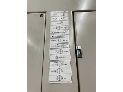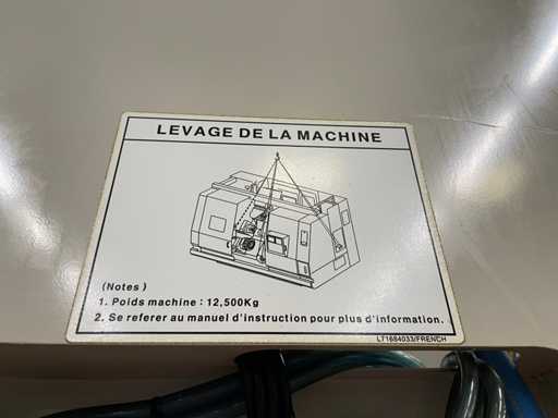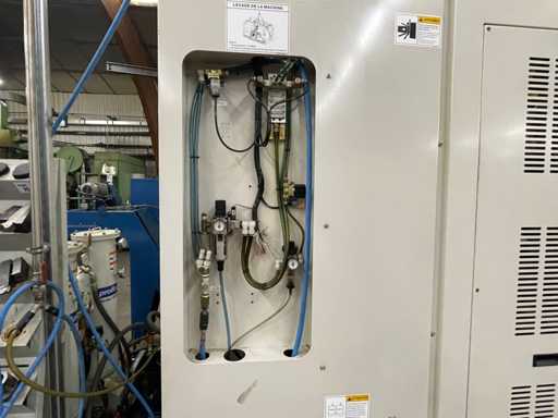 Dimensions : 5.500 × 2.565 × 2.600 mm, poids ~15.000 kg. Connexion électrique : AC 400V / 50 Hz. Ces caractéristiques impliquent des moyens de manutention adaptés, mais la mise sur camion étant incluse, l’acquéreur bénéficie d’une logistique simplifiée.
