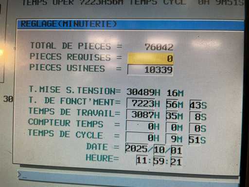 Les heures relevées (38.237 h CN, 30.291 h pompe) traduisent un usage soutenu, mais en cohérence avec la robustesse de la gamme PUMA. Le total de ~304.891 pièces usinées illustre sa productivité et son historique industriel.