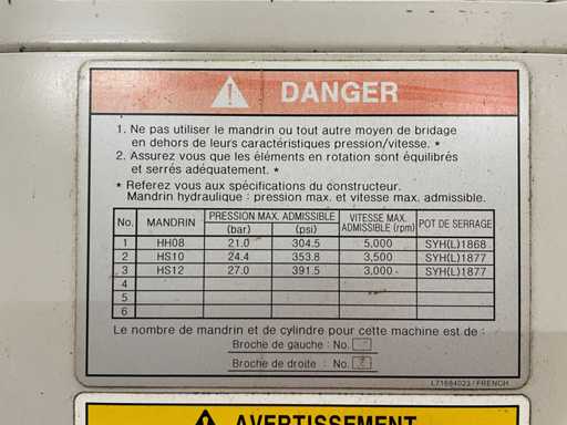 • Outillages et mandrins montés sur la machine non inclus