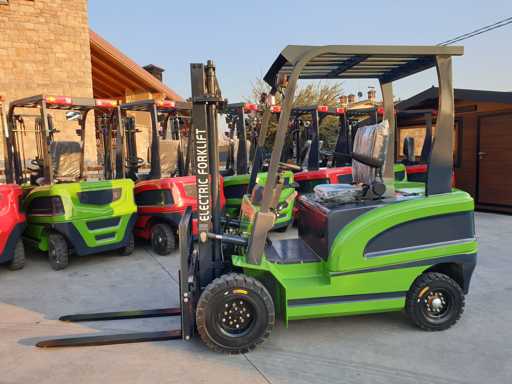 Chariot élévateur STIPP Li-Ion modèle CP15 (1500 kg), mât double, déplacement latéral, batteries lithium, équipé d’un chargeur interne à charge rapide, hauteur de levage de 3 mètres jamais utilisée 0 heure