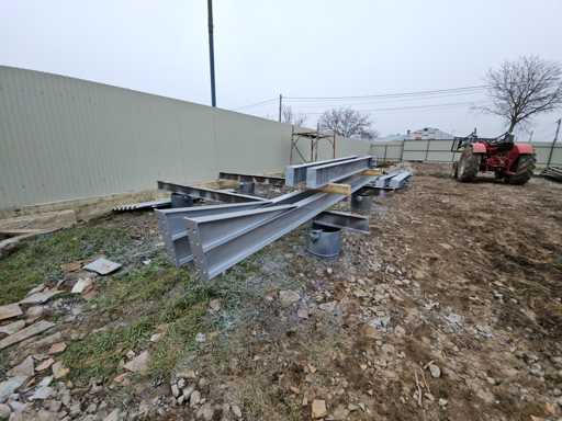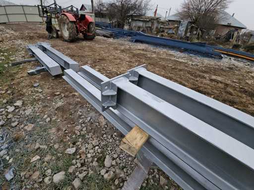 Informations supplémentaires : Construction en acier ; Hauteur de crête 3223 mm ; Année de construction 2026 ; Informations supplémentaires : Pente du toit : 10 degrés ; Peint en zinc Galva ; La construction se compose de 2 poutres (fermes) en profil IPE 180, ET de 2 colonnes en profil IPE 200, toute la structure est sur vis (démontable). Condition : inutilisée ; L’ensemble de la structure comprend un certificat de conformité pour les matériaux. Chargement gratuit