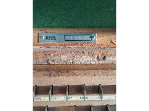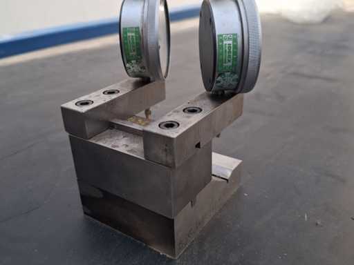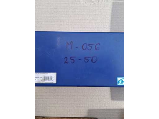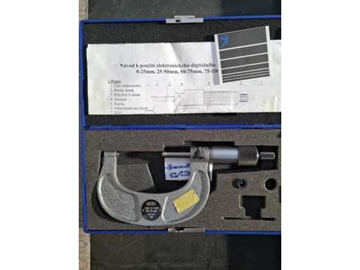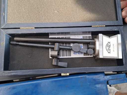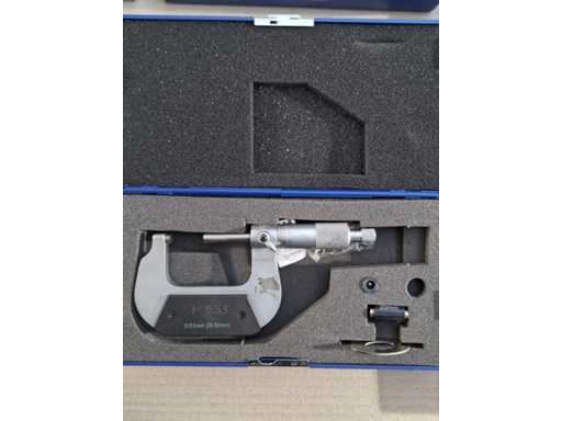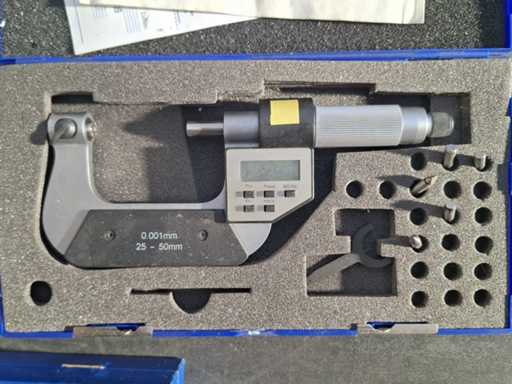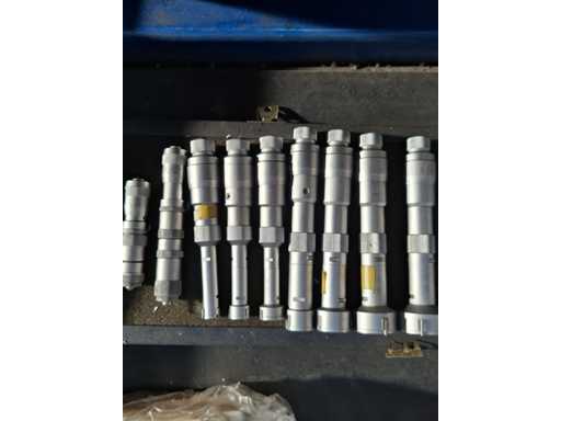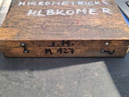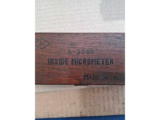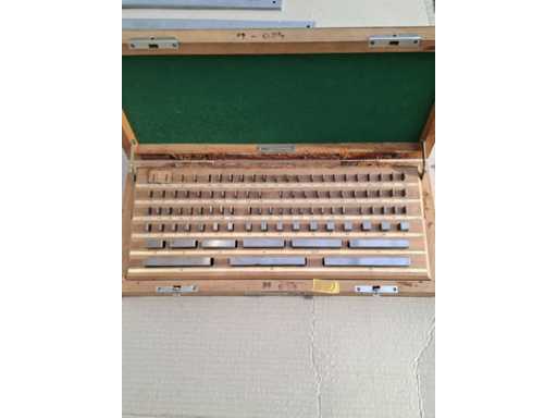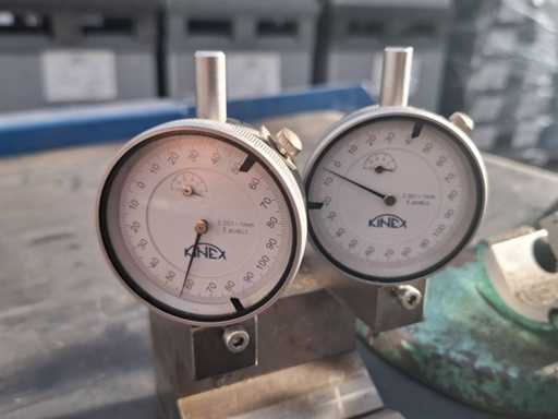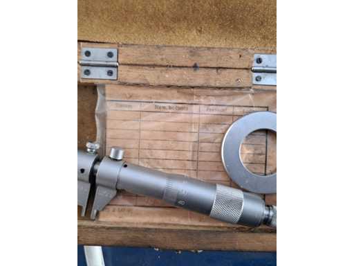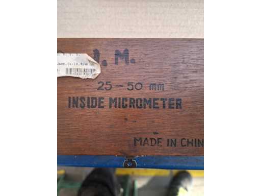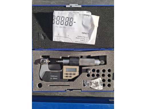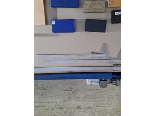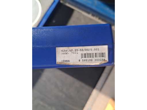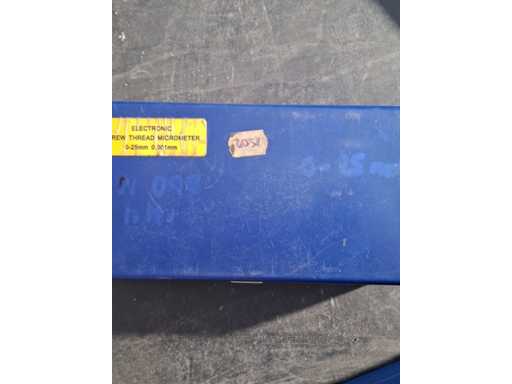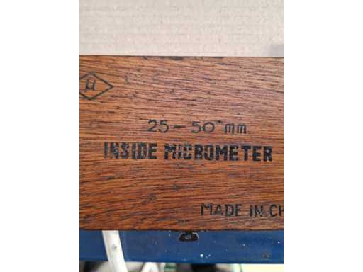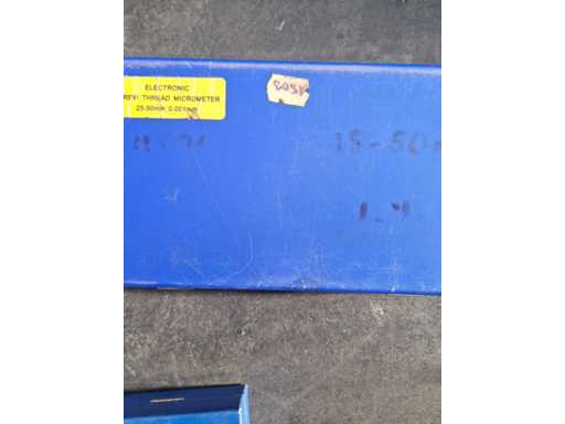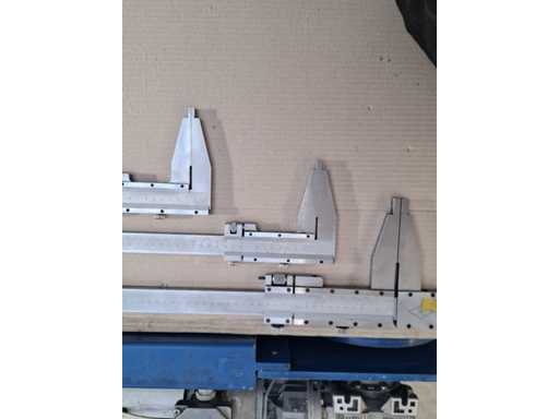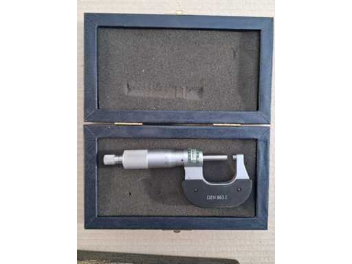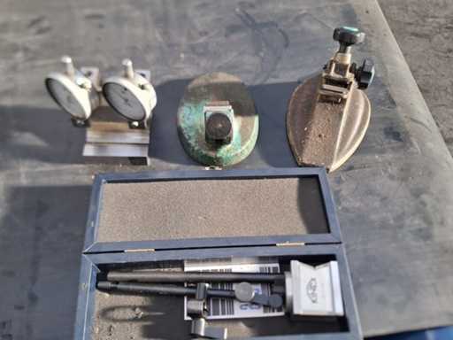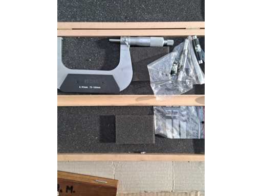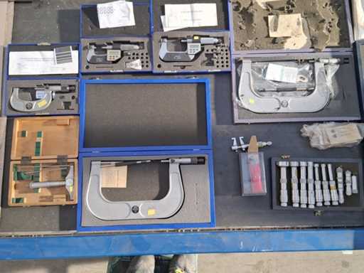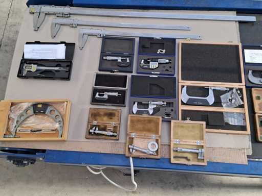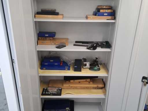 Divers instruments de mesure analogiques et numériques (étriers, calibres, micromètres, outils de précision). Armoire étagère métallique incluse.