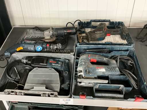 Composée de : meuleuse d’angle, scie alternative, perceuse marteau, scie sautée, perceuse.