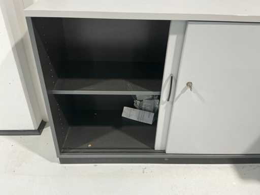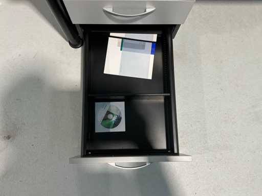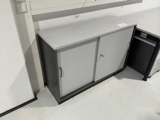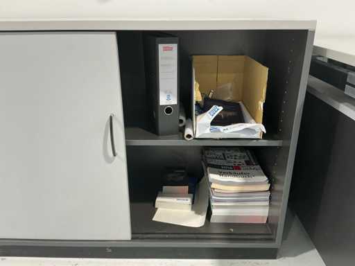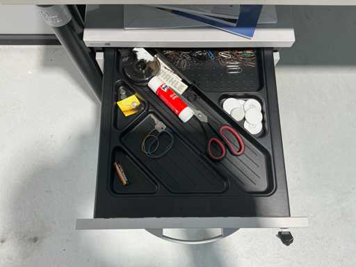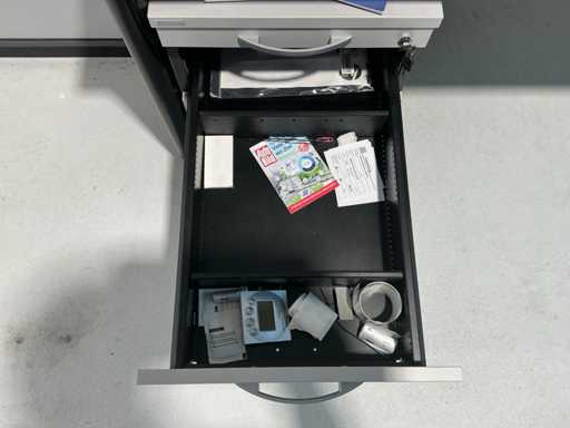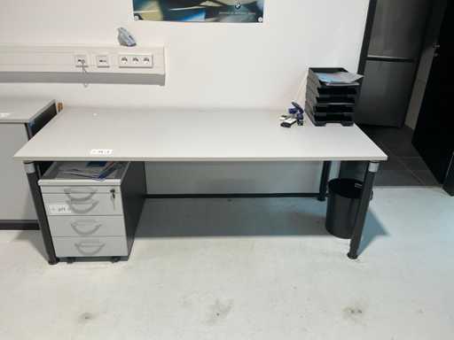 Composé de table, conteneur mobile et buffet, table : 200x80x75 cm, conteneur mobile : 44x80x59 cm, buffet : 120x44x83