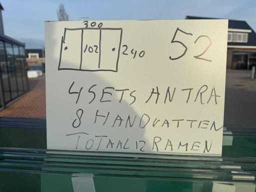 4 ensembles de 3 fenêtres coulissantes – 102 cm x 240 cm, verre transparent